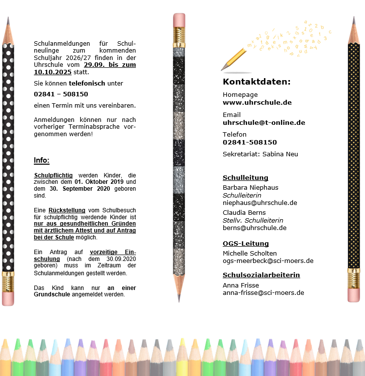 Melden Sie sich gerne bei Interesse per Mail (uhrschule@t-online.de) bei Barbara Niephaus, Schulleiterin der Uhrschule.