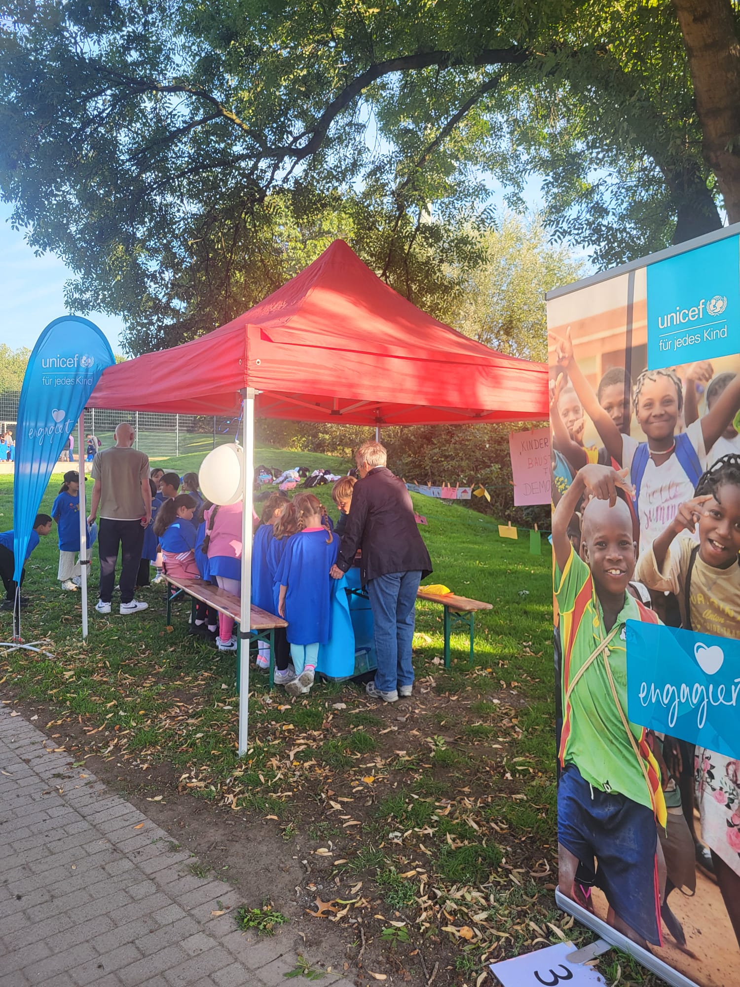 Seit dem 20.09.2022 feiern wir jedes Jahr (möglichst direkt) am 20.09. in Kooperation mit dem SCI:Moers und der Geschwister Scholl Gesamtschule das Weltkindertagsfest für die Uhrschulkinder. Die Jahrgangsstufe 11 der Geschwister Scholl Gesamtschule plant dafür mehrere Spiel-, Tanz-, Kunst- und Bewegungsaktionen, die sie in Kleingruppen mit den Uhrschulkindern durchführen. Auch UNICEF hat einen Informationsstand, an dem die Kinder zu den Kinderrechten lernen können.